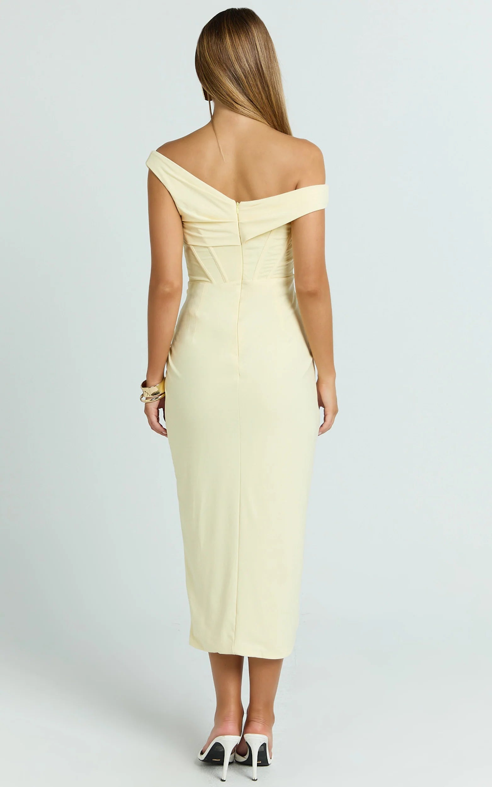 The Aidia Midi Dress shines as a statement in the Dresses lineup, think curve-defining corsetry, a confident off-shoulder neckline, and a hem that hits that sweet spot between classy and flirty. Perfect for weddings, long lunches, or date nights, this lemon look turns heads the second you step in. Pair with your favourite Platform Heels and Square Sunglasses to elevate the vibe and keep the spotlight firmly on you.