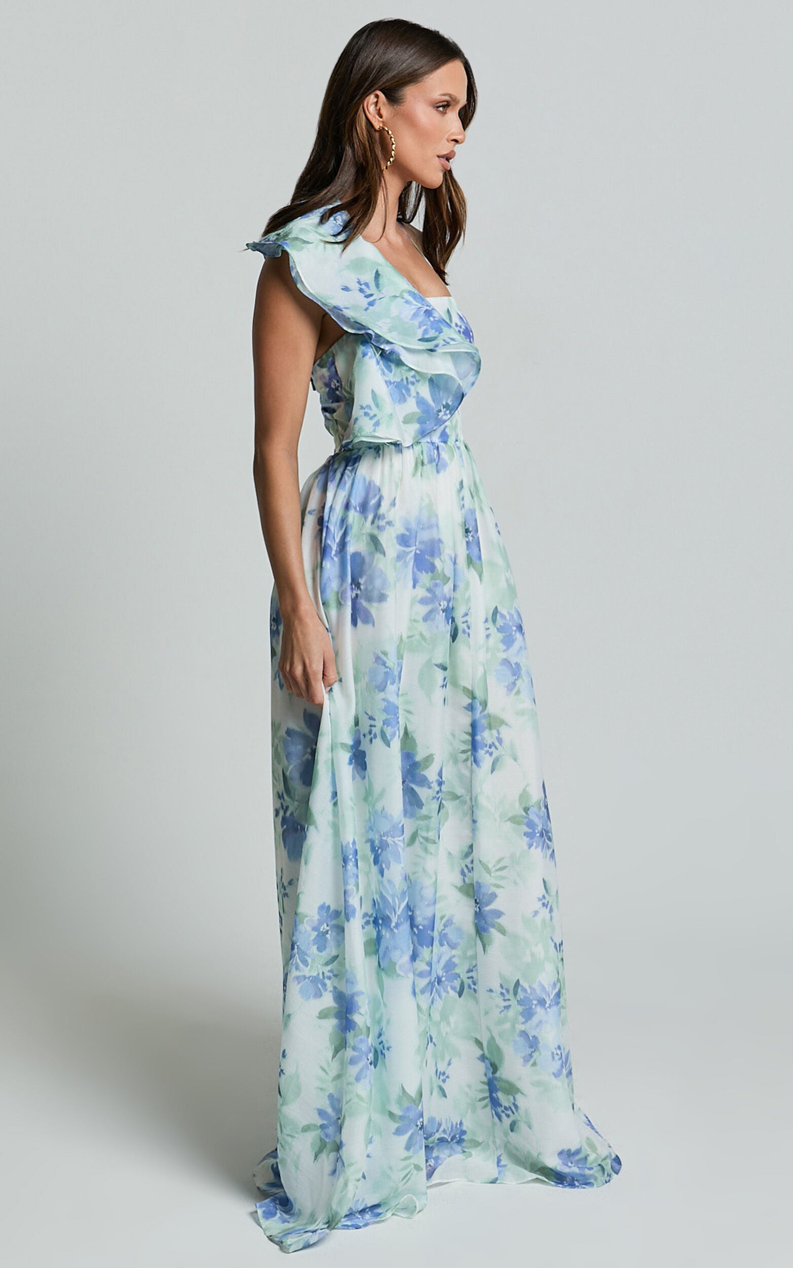 Get ready to turn heads in the Amalie The Label - Fleur Halter Ruffle Detail A Line Maxi Dress In Delhia Floral Print. This white dress features a stunning floral print that is perfect for any party or day event. The A-line silhouette flatters all body types, while the ruffle detailing adds a touch of femininity. Made from voile and polyester, this maxi dress is not only stylish but also comfortable to wear all day long. With its sleeveless design and straight neckline, you'll feel confident and empowered every step of the way. Shop now and make a statement with this must-have piece from Showpo's collection of dresses!Product Details:Inner LiningZip ClosureA-Line DressVoile FabricStraight NecklineParty Day EssentialMaxi LengthSleeveless DesignPolyester MaterialSize and FitSize S / 8 length: 138.5cm / 54.53inMaterial and CareMain Fabric: 100% Polyester Lining: 100% CottonNo Stretch