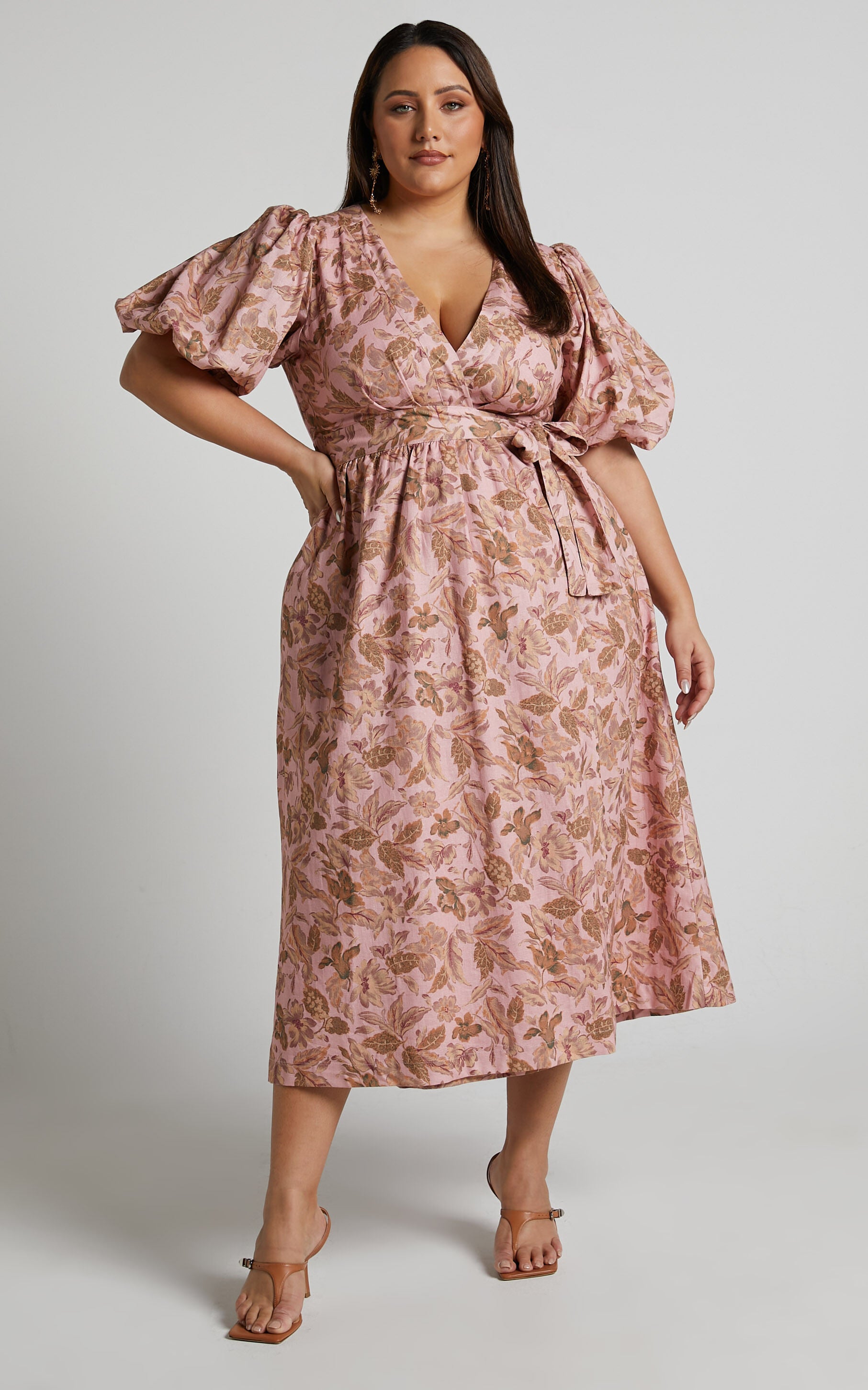 Get ready to turn heads in the Amalie The Label Franc Midi Dress! This stunning pink linen blend dress is perfect for any occasion, whether it's a casual day out or a party night. The A-line silhouette and wrap style flatter every body shape, while the puff sleeves add a feminine touch. Made from breathable linen fabric, this dress will keep you cool and comfortable all day long. With its plunging neckline and midi length, it's the perfect combination of sexy and sophisticated. Whether you're heading to a weekend activity or a day at work, this versatile dress has got you covered. Embrace your inner fashionista with this must-have piece from Amalie The Label!Product Details:Linen fabricPull on styleA-line dress, wrap dress, day dressPlunge necklineMidi lengthShort sleevesCasual, party day, weekend activity useSize and FitSize S / 8 length: 125cm / 49.21inStudio model is wearing size XS / 6 AU / 2 US / 6 UK / 34 EUStudio model measurements are:Height: 170cm / 5'7''Bust: 84cm / 33''Waist: 61cm / 24''Hip: 88cm / 35''Studio model is wearing size XXXL / 18 AU / 14 US / 18 UK / 46 EUStudio model measurements are:Height: 172cm / 5'8''Bust: 111cm / 44''Waist: 91cm / 36''Hip: 129cm / 51''Material and CareMain Fabric: 100% LinenNo StretchThe main fabric of this product is made from 100% Natural Fibres, Whilst some of these fibres still have detrimental impacts in thier supply chain, Natural Fibres have a reduced overall impact compared to a raw polyester.