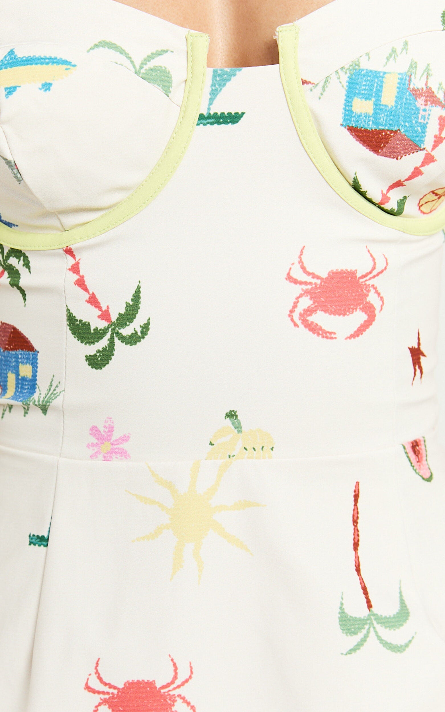 Transform your look with the Amalie The Label - Kalista Bustier Tie Up Back Mini Dress, your new go-to piece that speaks volumes in the Tropical Oasis Print. As you step into the room, let the creamy hues and vibrant prints of this fit & flare dress encapsulate your spirit. Designed for the modern woman, this dress embodies empowerment with every thread.Product Details:Zips detailingInner LiningFit & Flare styleSweetheart necklineParty perfectMini lengthSleeveless cutMid Weight WovenPolyester fabricSize and FitSize S / 8 length: 62.5cm / 24.61inMaterial and CareMain Fabric: 100% Polyester Lining: 100% Polyester Contrast Fabric: 97% Polyester, 3% SpandexNo Stretch