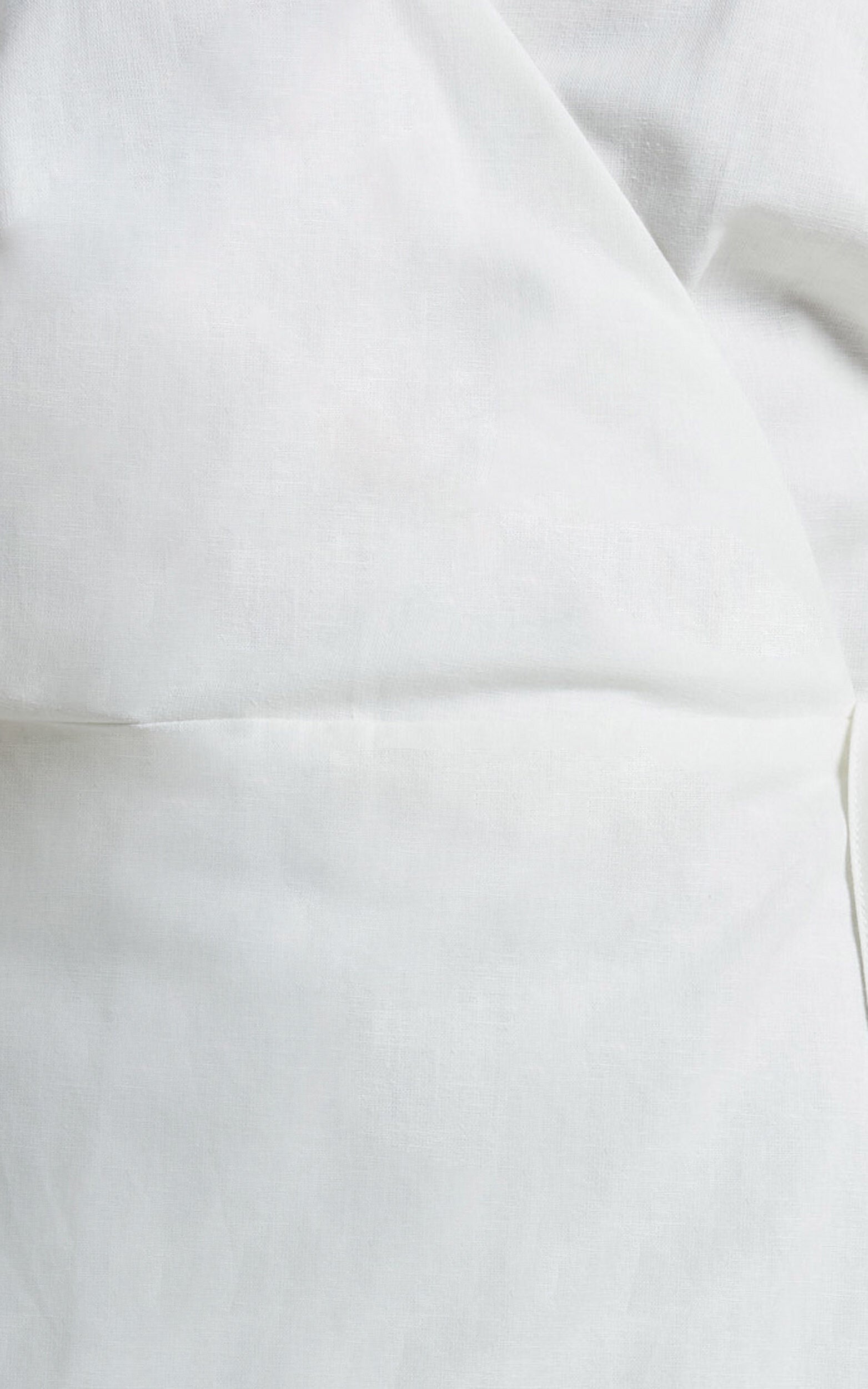 Get ready to make a statement with the Amalie The Label - Santana Linen Blend Puff Sleeve Wrap Midi Dress in White. Crafted from a luxurious blend of linen and cotton, this dress is perfect for any party or special occasion. The wrap style creates a flattering silhouette, while the puff sleeves add a touch of femininity. With its plunging neckline and midi length, this dress strikes the perfect balance between sexy and sophisticated. Whether you're attending a summer wedding or going out for drinks with friends, this dress will have you looking effortlessly stylish. So go ahead, embrace your unique style and feel empowered in this beautiful white wrap dress.Product Details:Pull on styleWrap DressLinen fabricPlunge necklineMidi lengthShort SleeveSize and FitSize S / 8 length: 132cm / 51.97inMaterial and CareMain Fabric: 54% Cotton, 46% Linen Lining: 100% CottonNo StretchNatural FibresThe main fabric of this product is made from 100% Natural Fibres. Whilst some of these fibres still have detrimental impacts in their supply chain, Natural Fibres have a reduced overall impact compared to a raw polyester.