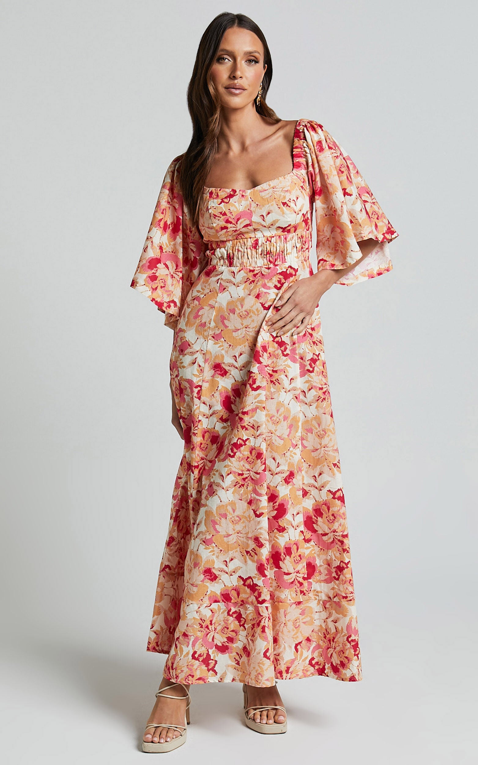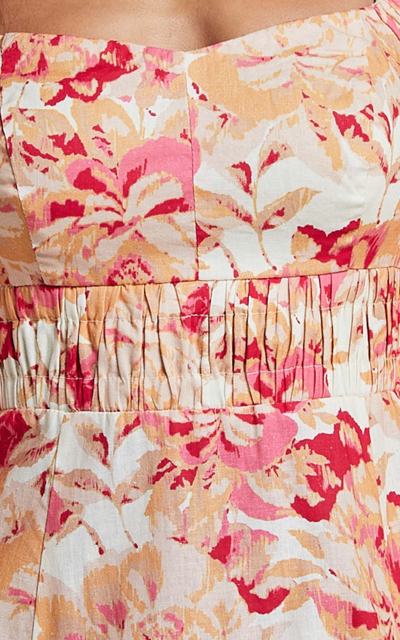 Embrace the warm weather with the Amalie The Label Thalia Linen Blend Puff Sleeve Midi Dress in Sienna Print. This stunning fit and flare dress features a vibrant orange hue that is perfect for parties or day outings. Made from a luxurious blend of linen and cotton, it offers both comfort and style. The off-the-shoulder design adds a touch of femininity, while the puff sleeves bring volume and drama to your look. With its midi length and short sleeves, this dress is versatile enough to be dressed up or down for any occasion. Stand out from the crowd in this trendy piece that celebrates your individuality and zest for life!Product Details:Off The Shoulder necklineFit & Flare Dress styleMidi lengthShort SleeveLinen fabric with inner lining and zips detailPerfect for Party Day occasionsMade of Cotton materialSize and FitSize S / 8 length: 122cm / 48.03inMaterial and CareMain Fabric: 54% Cotton, 46% LinenLow StretchNatural FibresThe main fabric of this product is made from 100% Natural Fibres. Whilst some of these fibres still have detrimental impacts in their supply chain, Natural Fibres have a reduced overall impact compared to a raw polyester.
