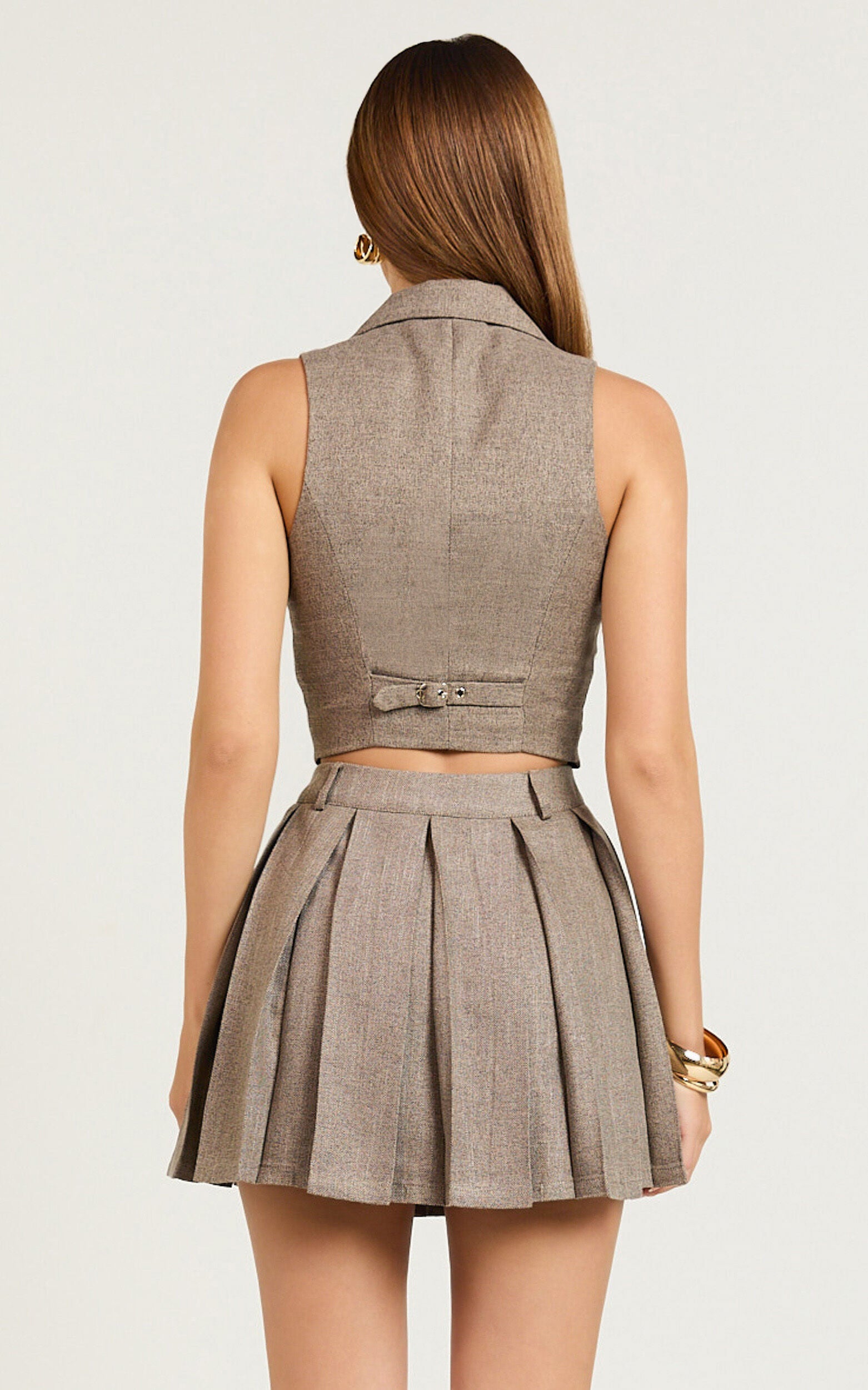 Dive straight into chic sophistication with our Andie Mini Skirt - a fashion-forward essential that promises to elevate your wardrobe to the next level! This tailored pleated mini skirt is designed to be worn low to mid-rise. Arriving in a versatile grey, is the perfect blend of professionalism and playful panache, making it a must-have piece for both workwear and weekend vibes.Product Details:Zips featureInner liningA-line skirtTwill fabricPolyester materialWorkwear appropriateMini lengthMid waistSize and FitSize S / 8 length: 37.5cm / 14.76inMaterial and Care90% Polyester, 10% RayonNo Stretch