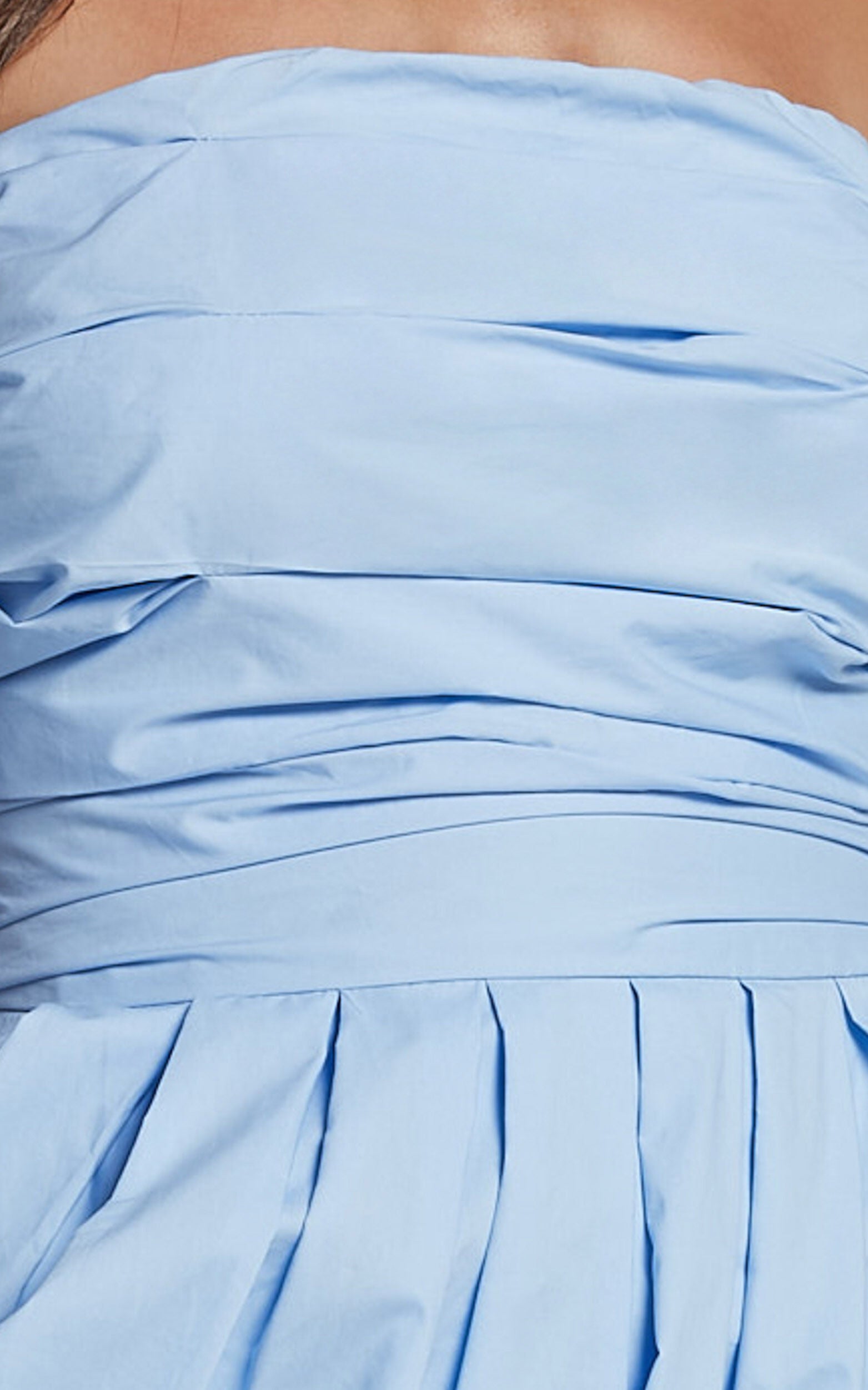 Turn heads and make a statement in our Annie Midi Dress! This off-the-shoulder ruffle sleeve pleated dress in pale blue is perfect for any occasion - whether you're dressing up for a casual day out or getting ready to party the night away. The A line silhouette and fit & flare design flatter every body shape, while the comfortable cotton fabric ensures all-day comfort. With its elegant midi length and strapless neckline, this dress is sure to become your new go-to piece. Embrace your unique style with Showpo's Annie Midi Dress!Product Details:A-line, fit & flare day dressOff the shoulder necklineMidi lengthStrapless sleevesInner lining for added comfort and coverageMaterial and CareLining: 100% Rayon Main Fabric: 100% CottonNo Stretch