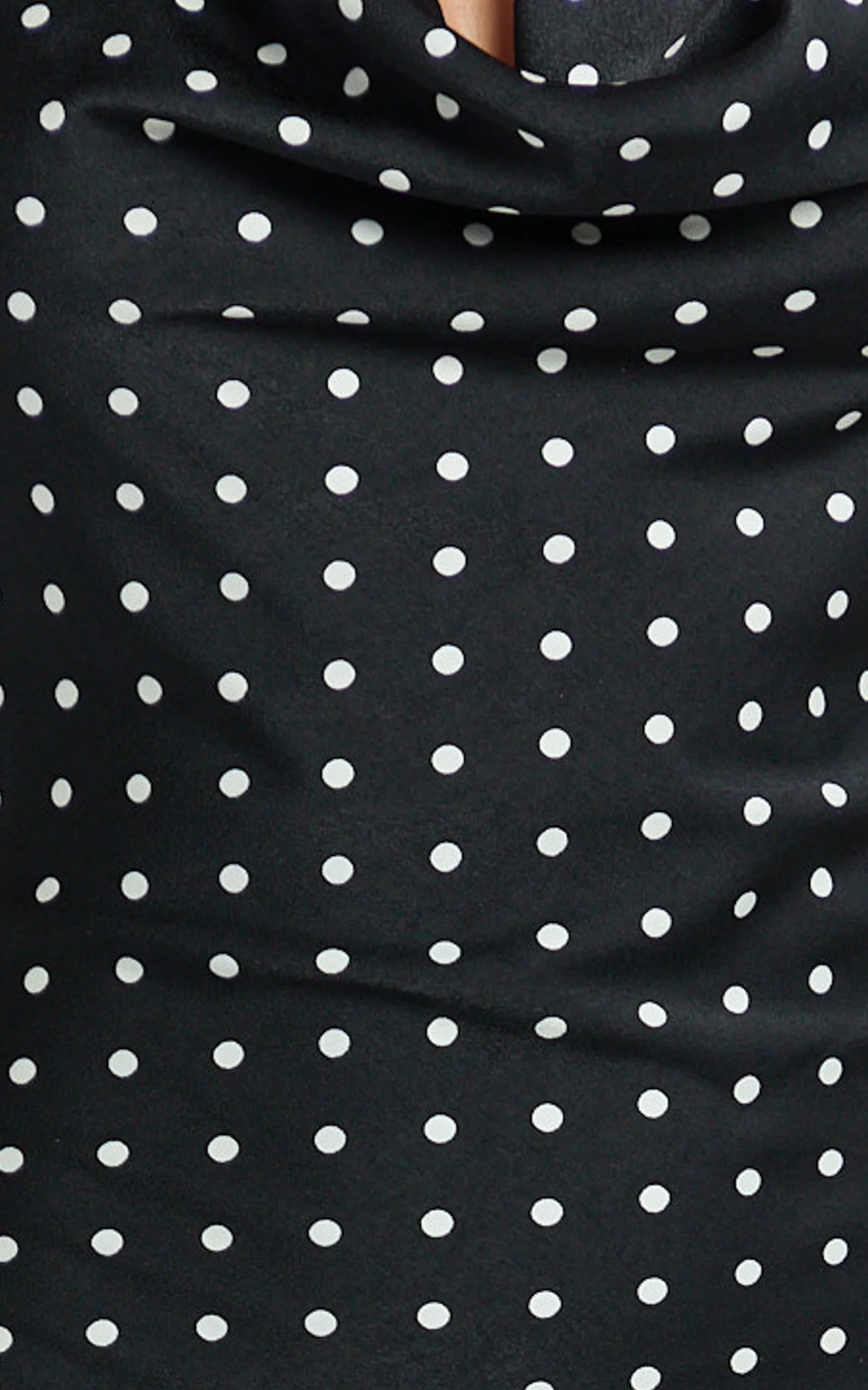 Blanca Maxi Dress - Cowl Neck Bias Cut Dress In Black Polka Dot dials up the allure while keeping it effortlessly wearable, style it with High Shine accents and Oversized Bags for a chic contrast, or add delicate jewels to let the print speak. A polished go-to that transitions from dinner to late-night plans without skipping a beat.