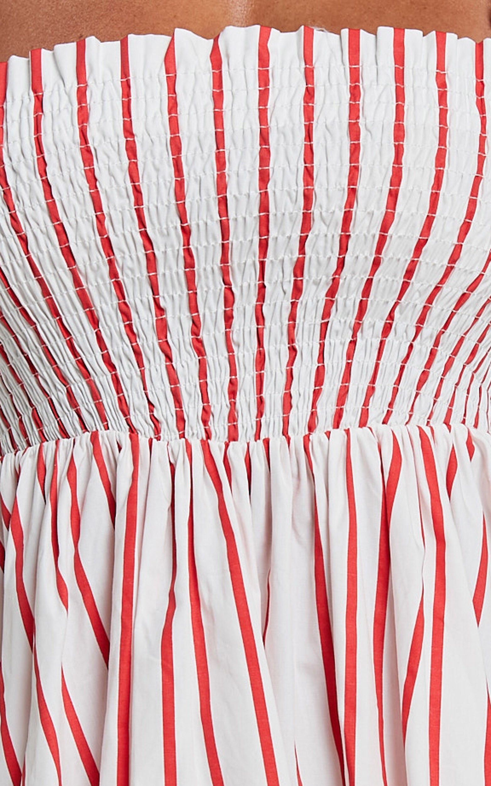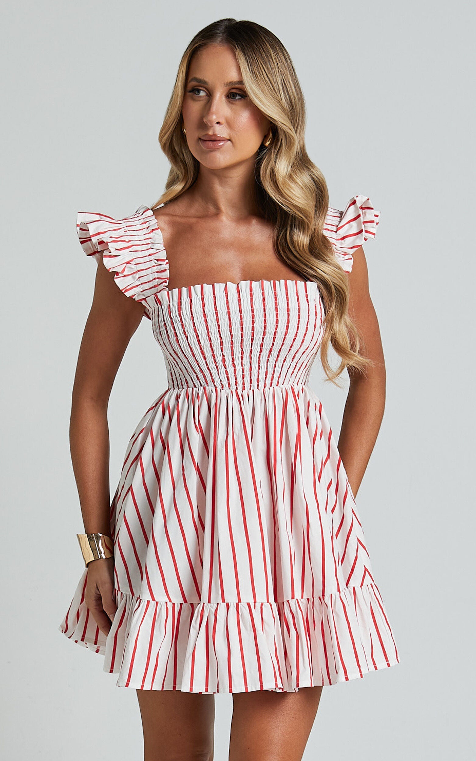 Get ready to turn heads in our Brynlee Mini Dress - Elastic Chest Flutter Sleeve Hem Dress In Red Stripe! This stunning red stripe dress is perfect for those casual and laid-back days when you want to look effortlessly stylish. Made from lightweight cotton, the square neckline and flutter sleeves add a touch of femininity to this fit and flare dress. With its elastic chest design, it provides a comfortable and flattering fit for all body shapes. Whether you're heading out for brunch or catching up with friends, this mini dress will make you feel confident and empowered wherever you go. So why wait? Add this versatile piece to your wardrobe today!Product Details:Pull on styleFit & Flare DressCotton fabricSquare necklineCasual end useMini lengthShort SleeveSize and FitSize S / 8 length: 64cm / 25.2inMaterial and Care65% Cotton, 35% PolyesterLow / No stretch
