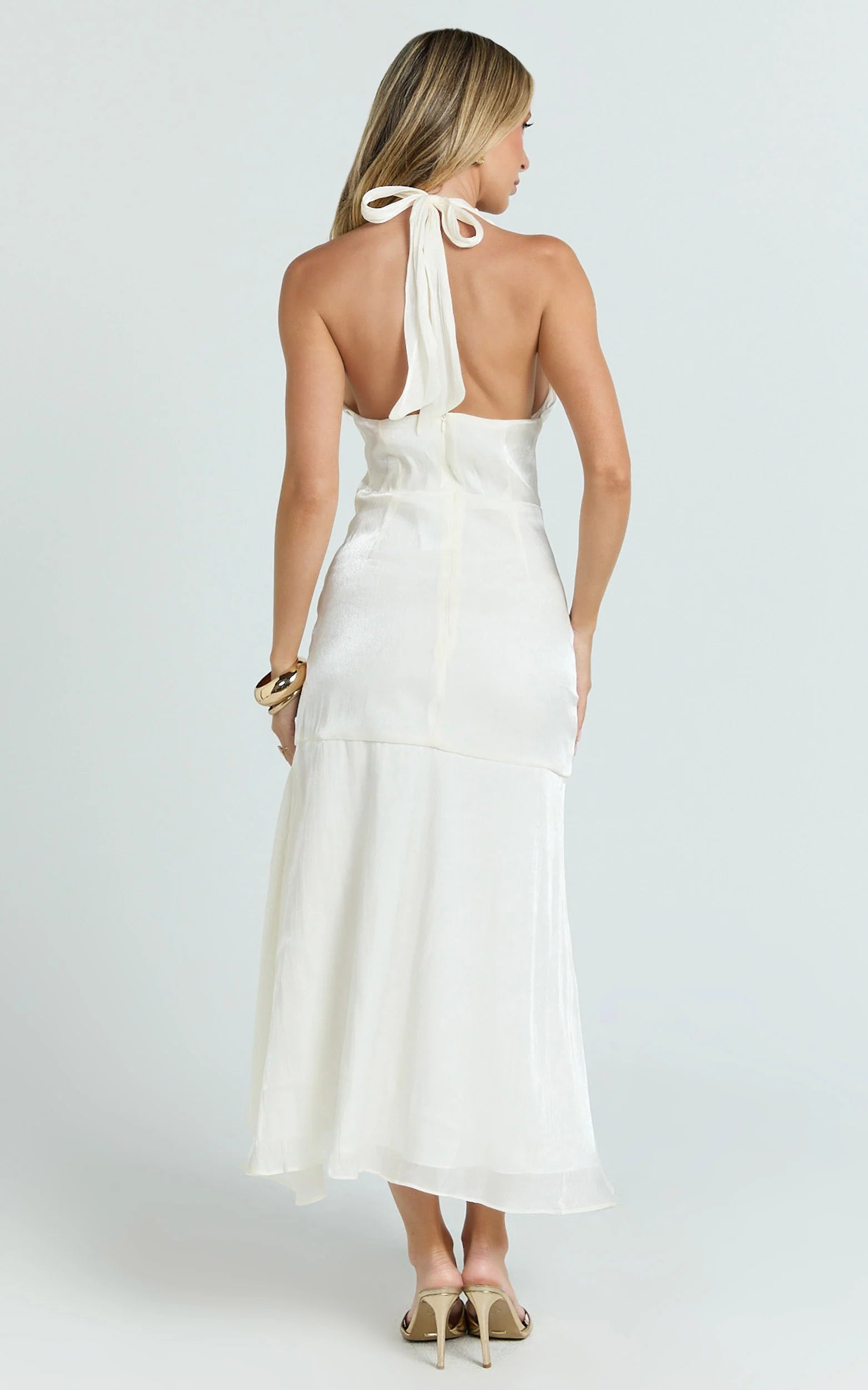The Carmela Midi Dress in Off White features a gathered bust and slim shoulder straps that sculpt the décolletage, while the front leg split brings easy movement and a touch of drama. It’s a fresh white moment that takes you from long lunch to after dark with a simple switch of accessories. Carmela nails modern minimalism with styling potential for days - layer with pendant necklaces for a polished glow or play with sheer cover-ups for extra texture. Keep it coastal with flip-flops or elevate with oversized sunglasses and a sleek clutch. A wear-on-repeat favourite for every RSVP.