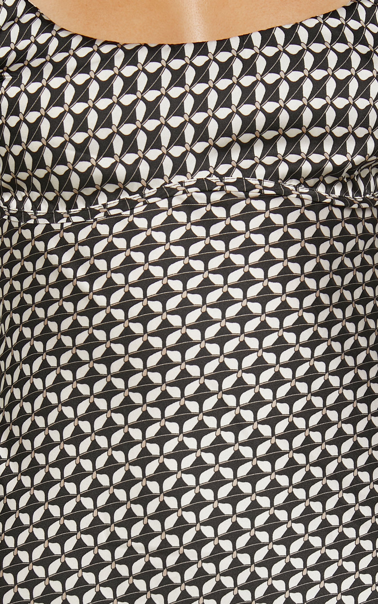 Get ready to turn heads in the Cathreona Midi Dress. This stunning scoop neck bodycon dress is perfect for a night out on the town or a special occasion. Made from high-quality polyester, this dress hugs your curves in all the right places and accentuates your figure. With its sleeveless design and midi length, it's both classy and flirty at the same time. The black geo print adds an edgy touch to this classic silhouette, making it a must-have addition to your party day wardrobe. So go ahead, feel confident and empowered as you rock this fabulous dress at your next event!Product Details:Scoop necklineSleeveless bodycon dressMade of polyesterMidi lengthSuitable for parties and casual occasionsMaterial and Care100% PolyesterLow / No stretch
