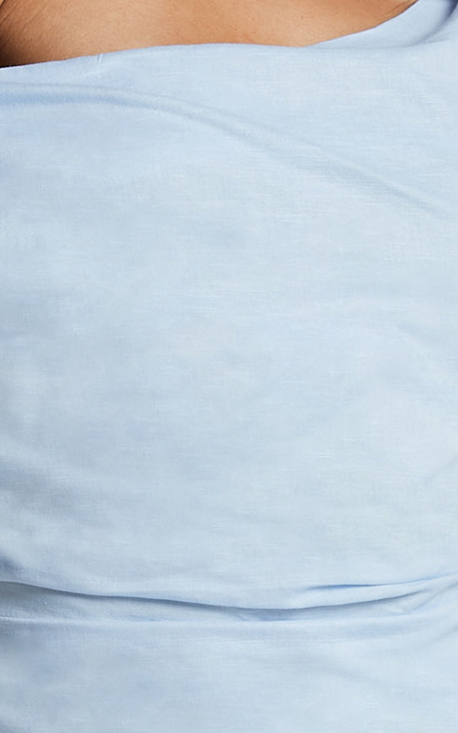 Stand out from the crowd in our Cincinnati Midi Dress! This stunning off-the-shoulder side split column dress in pale blue is perfect for any occasion. Made from a comfortable and breathable polyester material, this sleeveless dress features a flattering fit and flare silhouette that will accentuate your curves. Whether you're heading to brunch or a casual day out, this midi dress is versatile enough to be dressed up or down. Get ready to turn heads and make a statement with our Cincinnati Midi Dress!Product Details:Off the shoulder necklineSleevelessMidi lengthFit & flare styleCasual useMade of polyester fabricZips closureMaterial and CarePolyesterLow / No stretch