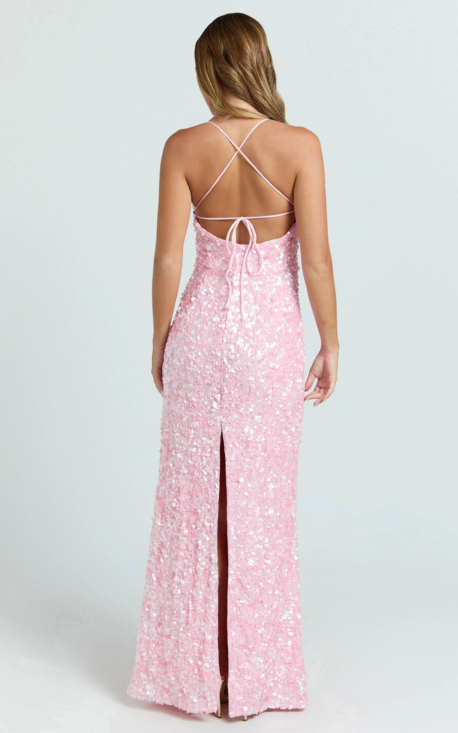 The Clara Maxi Dress in Pink brings full-on sparkle with a body-hugging silhouette and an open tie-back that skims and shines under every light. In a lush pink hue dripping with sequin energy, it’s your go-to for weddings, formals, and nights that run late - think photo-ready confidence with zero effort. The flattering scoop neckline and adjustable tie-back let you customise your fit and flaunt that perfect back moment. Style with platform heels and oversized sunglasses for a touch of disco glamour, or switch it up with ballet flats for a sleek finish. Perfect for those who live for dresses that do the most - it’s swipe-right material for party season. Add a shell pendant necklace or statement cuffs to play up the shine, and you’re set to steal the spotlight.