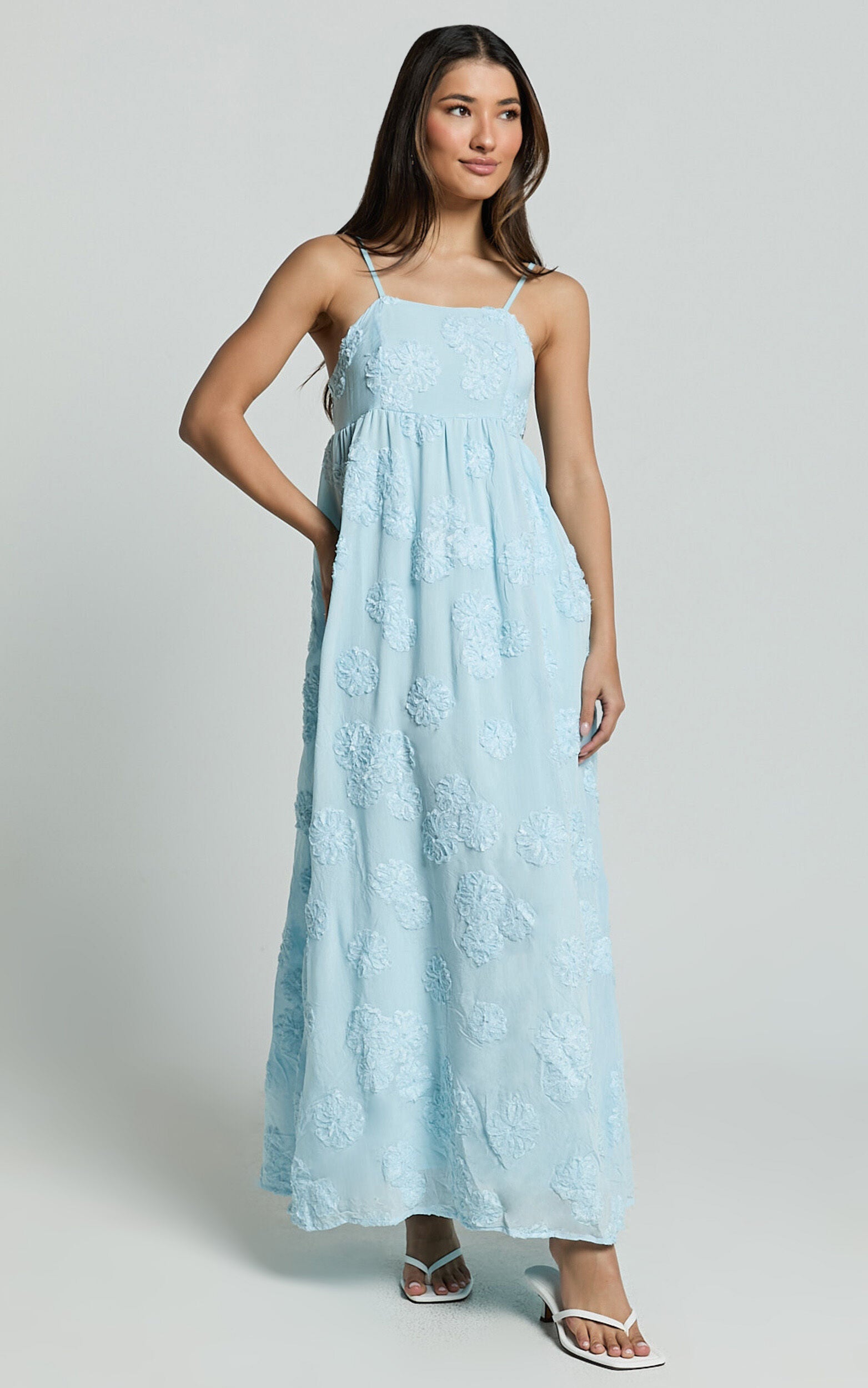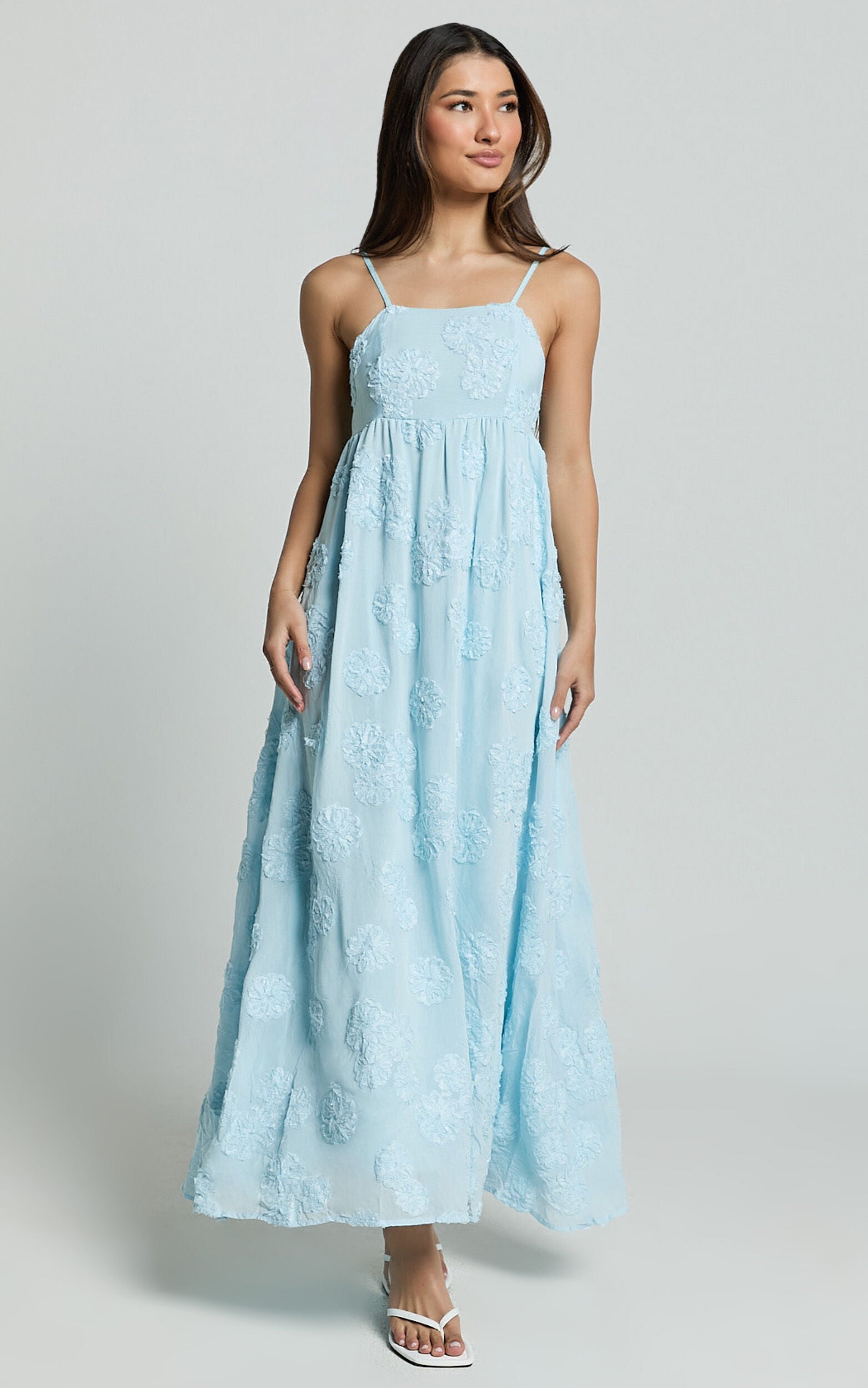 Elevate your wardrobe with the Claya Maxi Dress, a unique blend of comfort, style, and elegance, meticulously crafted for the modern woman. This exquisite sleeveless straight neckline floral detail dress in pale blue is where fashion meets functionality, promising to be your go-to ensemble for any occasion.Product Details:A Line DressDay DressEmbroidery FabricBackless NecklineParty PerfectMaxi LengthSleevelessCotton MaterialMaterial and CareCottonLow / No stretch