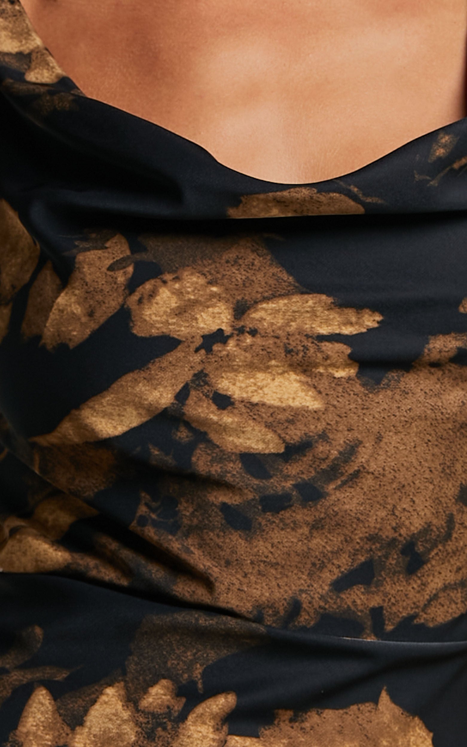 Turn heads at your next formal event with the Dara Midi Dress in Amber Floral Print. This sleeveless slip dress features a low scoop neck and a flirty midi length, making it perfect for showing off your personal style. Made from luxurious satin polyester fabric, this black dress is both comfortable and chic. Whether you pair it with heels for a night out or layer it under a blazer for a more professional look, the Dara Midi Dress is sure to make you feel empowered and confident.Product Details:Pull on styleSlip DressSatin fabricScoop necklineFormal occasionMidi lengthSleeveless designPolyester materialSize and FitSize S / 8 length: 135cm / 53.15inMaterial and Care100% PolyesterNo Stretch