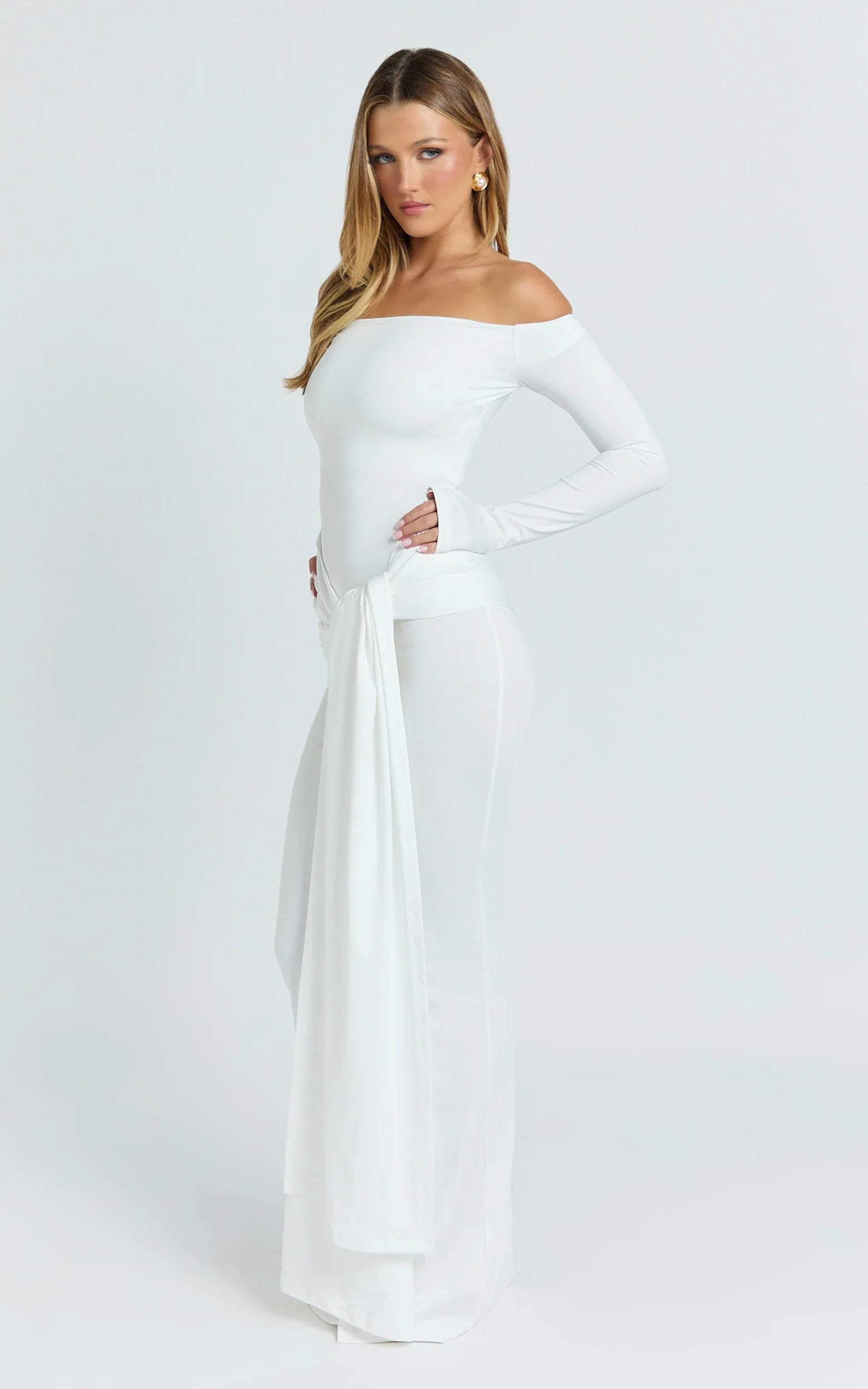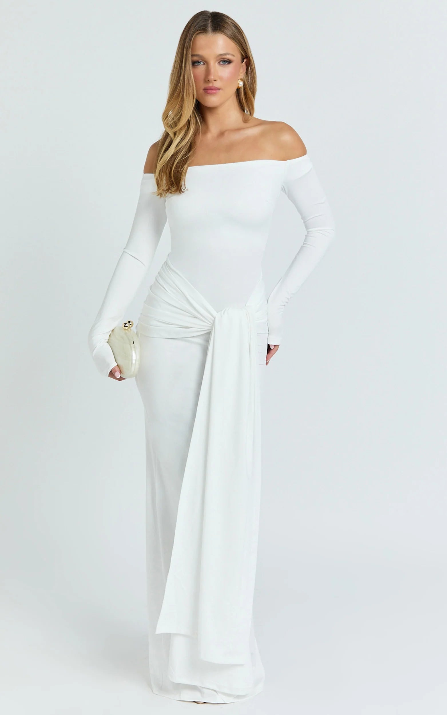 A boat neckline balances a sultry open back with tie detail, while long sleeves contour for a refined silhouette that skims and flows. From daytime polish to date‑night energy, it’s the versatile Dresses moment your wardrobe’s been waiting for.