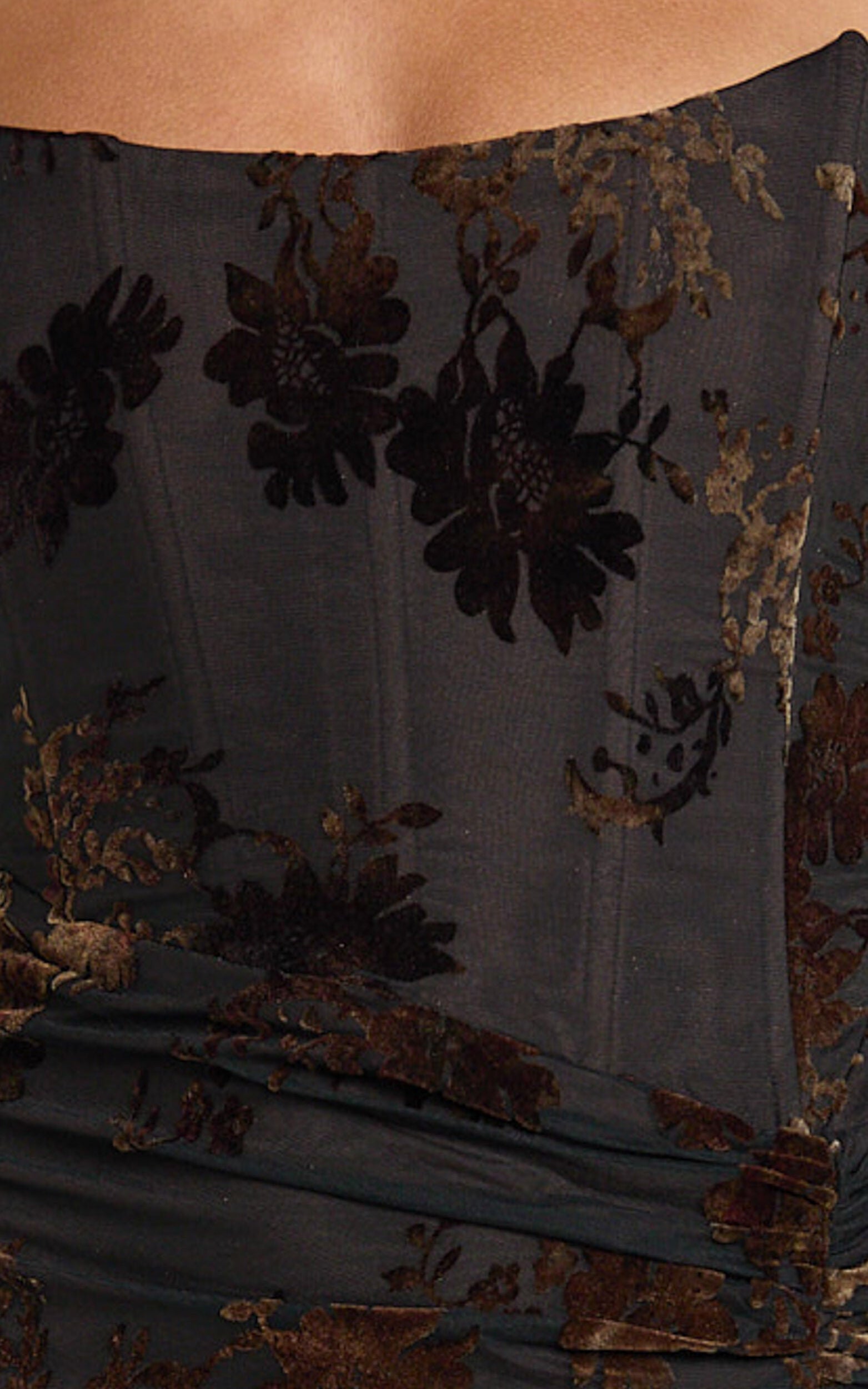 Get ready to turn heads in the Karlene Midi Dress, a stunning piece where sophistication meets modern flair. This ruched corset burnout dress, available in an eye-catching black and brown palette, is designed to embrace and empower your every curve. Crafted from quality polyester, it promises both comfort and style, making it a must-have in your wardrobe.