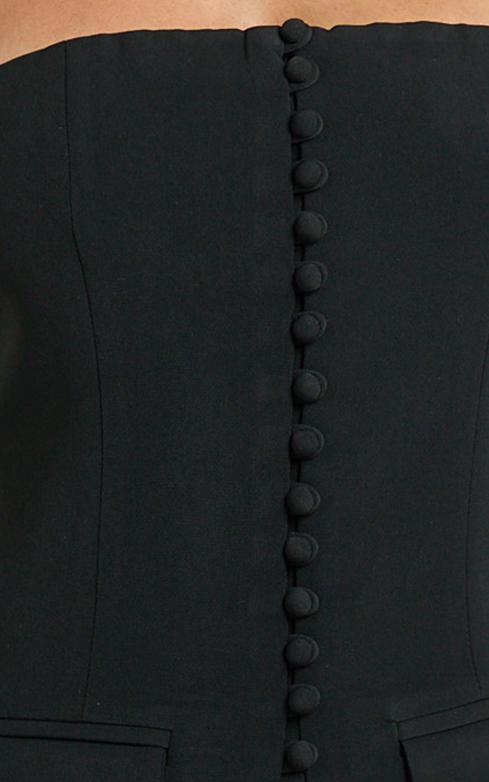 Make a statement in the Monroe Two Piece Set, your chic new workwear staple with a fashion-forward twist. Featuring a sleek strapless button-down longline vest top and a flattering high-waisted mini skirt in timeless black, this co-ord set is perfect for elevating your office-to-out vibe. The sleeveless vest creates an effortlessly modern look, while the tailored mini highlights your shape and keeps you feeling confident. Mix, match and style your way from boardroom meetings to after-hours cocktails��Monroe is the versatile set your wardrobe needs!