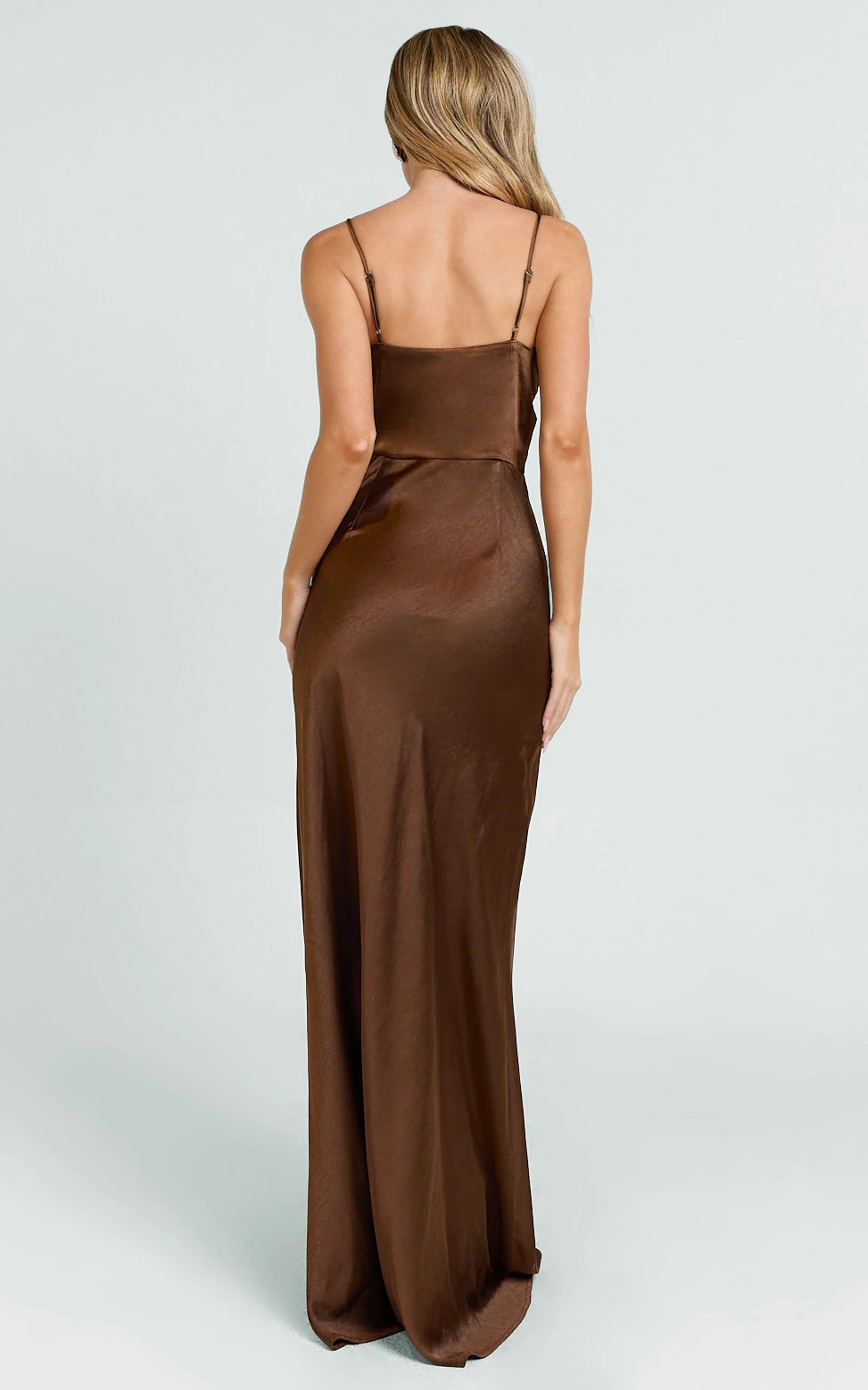 This sleek maxi slip skims and elongates, giving that low-effort, high-impact energy you love for cocktail hours and late-night plans. A fluid drape and thigh-grazing sway make it a go-to for Dresses lovers who want a clean, minimalist silhouette with maximum polish.