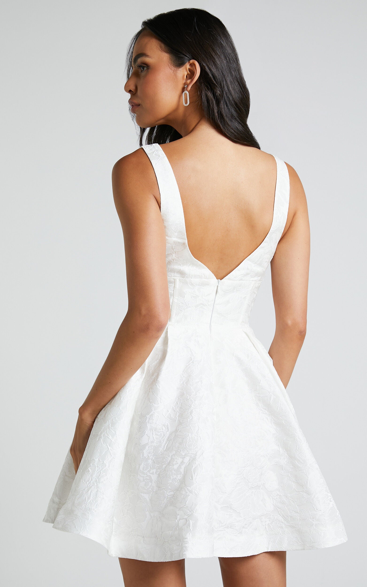 Designed to make you feel like a modern-day princess, the Stephane Mini Dress is the perfect choice for any wedding celebration. This ivory fit and flare dress features a corset scoop neck that highlights your collarbones and adds a touch of romance. Made from jacquard polyester fabric, this sleeveless summer dress has just the right amount of structure and stretch to ensure comfort on your special day. Whether you're attending as a guest or saying I do yourself, this stunning dress will have all eyes on you as you dance the night away in style.Product Details:Fit & Flare Dress, Wedding GownSweetheart NecklineMini LengthSleevelessFabric: JacquardMaterial: PolyesterSize and FitSize S / 8 length: 83cm / 32.68inStudio model is wearing size S / 8 AU / 4 US / 8 UK / 36 EUStudio model measurements are:Height: 177cm / 5'10''Bust: 79cm / 31''Waist: 61cm / 24''Hip: 91cm / 36''Studio model is wearing size XXXL / 18 AU / 14 US / 18 UK / 46 EUStudio model measurements are:Height: 172cm / 5'8''Bust: 111cm / 44''Waist: 91cm / 36''Hip: 129cm / 51''Material and CareMain Fabric: 100% PolyesterLow / No stretch