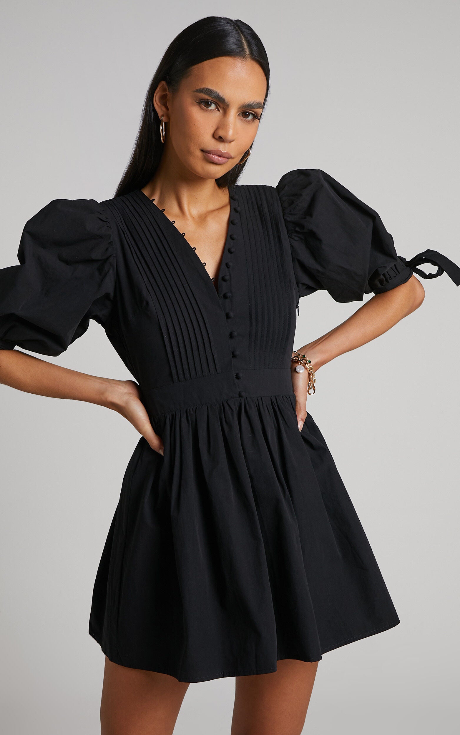 Show up and show off in our Zandra Puff Sleeve Dress! This pretty mini features a fit and flare silhouette with fabric buttons on the front, puff sleeves and gathering at the waist creating soft folds along the skirt. It's the perfect piece to take you to any upcoming day events and occasions. Wear it to a day party with heels and a mini handbag to match!
